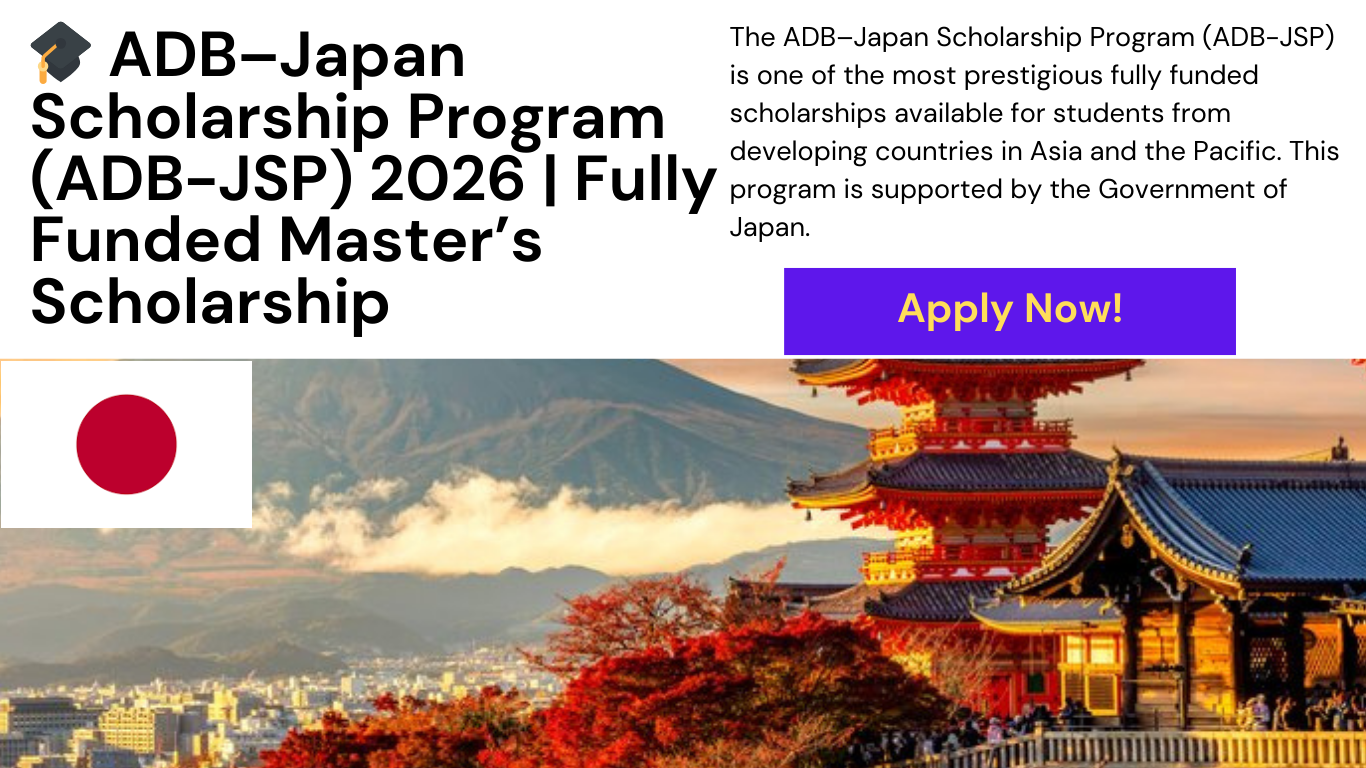- Scholarship Name: ADB–Japan Scholarship Program (ADB-JSP)
