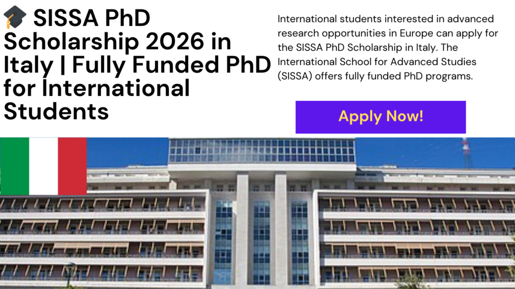 International students interested in advanced research opportunities in Europe can apply for the SISSA PhD Scholarship in Italy. The International