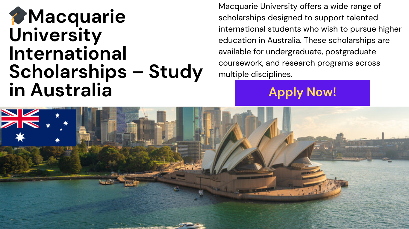 Macquarie University offers a wide range of scholarships designed to support talented international students who wish to pursue higher education in Australia. These scholarships are available for undergraduate, postgraduate coursework, and research programs across multiple disciplines. (Macquarie University)